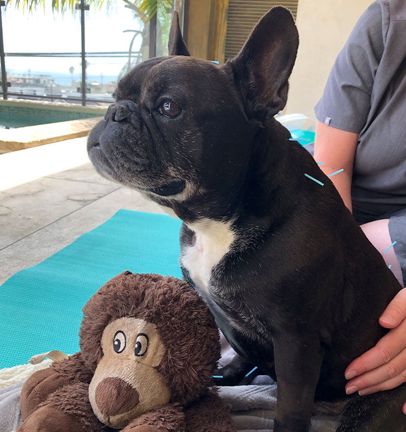 Dr. O’Neil is certified in veterinary acupuncture and has been effectively treating pets with acupuncture for many years. Acupuncture is a treatment that involves the stimulation of points, typically achieved through the insertion of specialized needles into the body. Each acupuncture point has specific actions when stimulated. Acupuncture can stimulate nerves, increase blood circulation, relieve muscle spasm, and cause the release of hormones such as endorphins (one of the body’s pain control chemicals) and cortisol (a natural steroid).